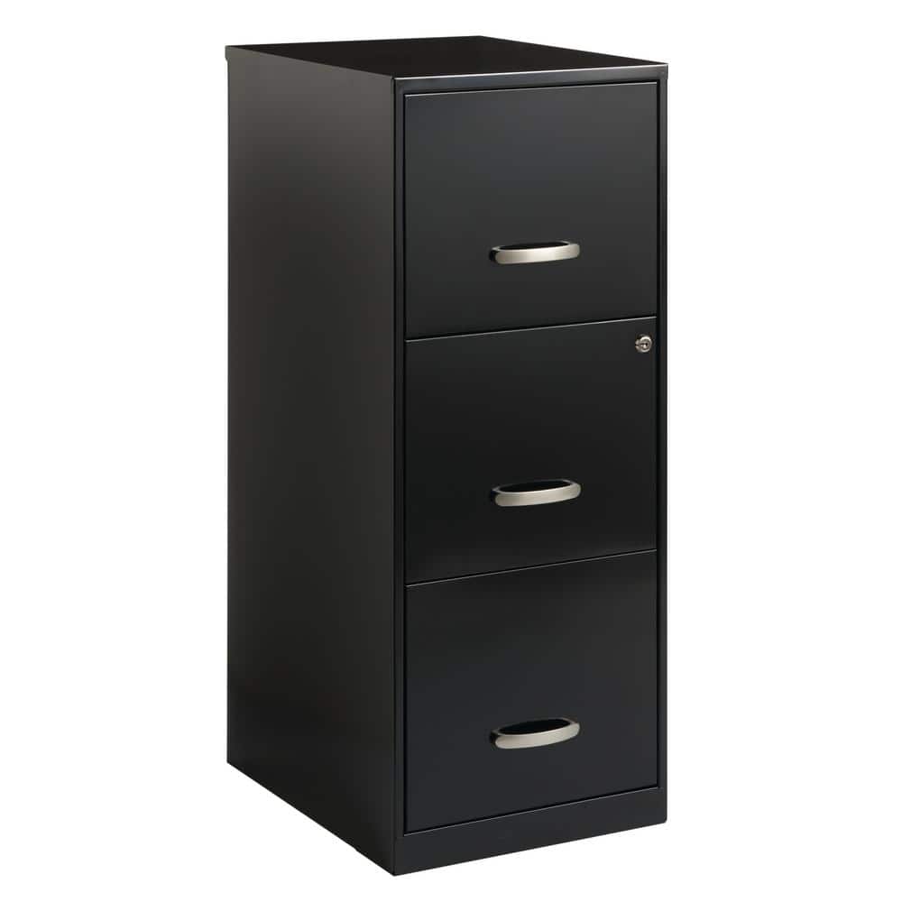 18 in. D 3-Drawer Black Metal Smart Letter Width 14.25 in. W Vertical File Cabinet